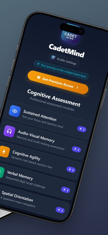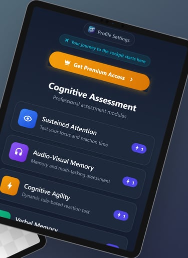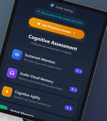 Professional cognitive training designed for pilot selection success. Train like a pro, think like a pilot.